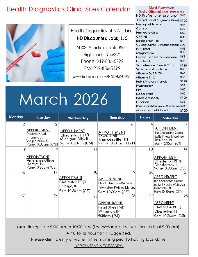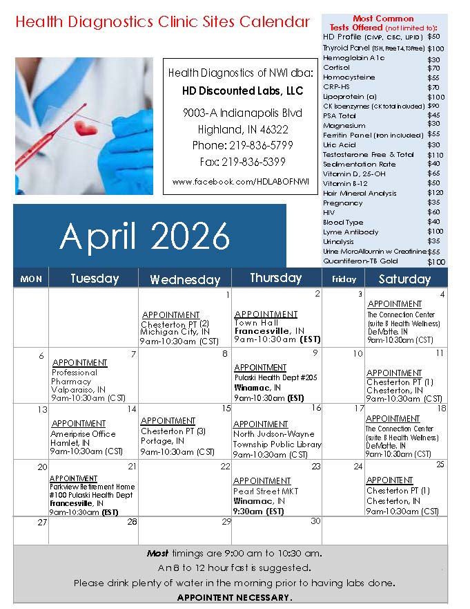 At HD Discounted Labs, LLC, we’re proud to be Highland’s trusted source for affordable diagnostic testing, serving Northwest Indiana since 2009. We offer routine lab services including thyroid screenings, Hemoglobin A1C, DNA paternity tests, drug screenings, and more—at a fraction of the cost of hospitals and traditional labs.