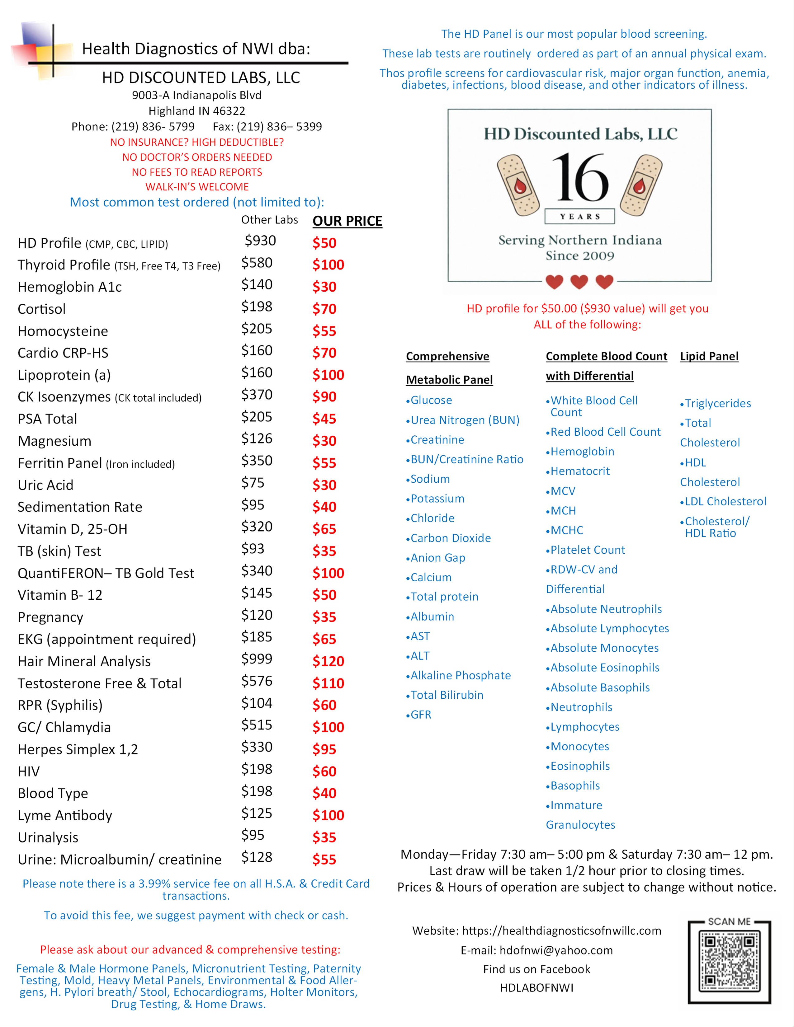 Stop by HD Discounted Labs in Highland, IN—no appointment or doctor referral needed. Your health matters, and we’re here to help.